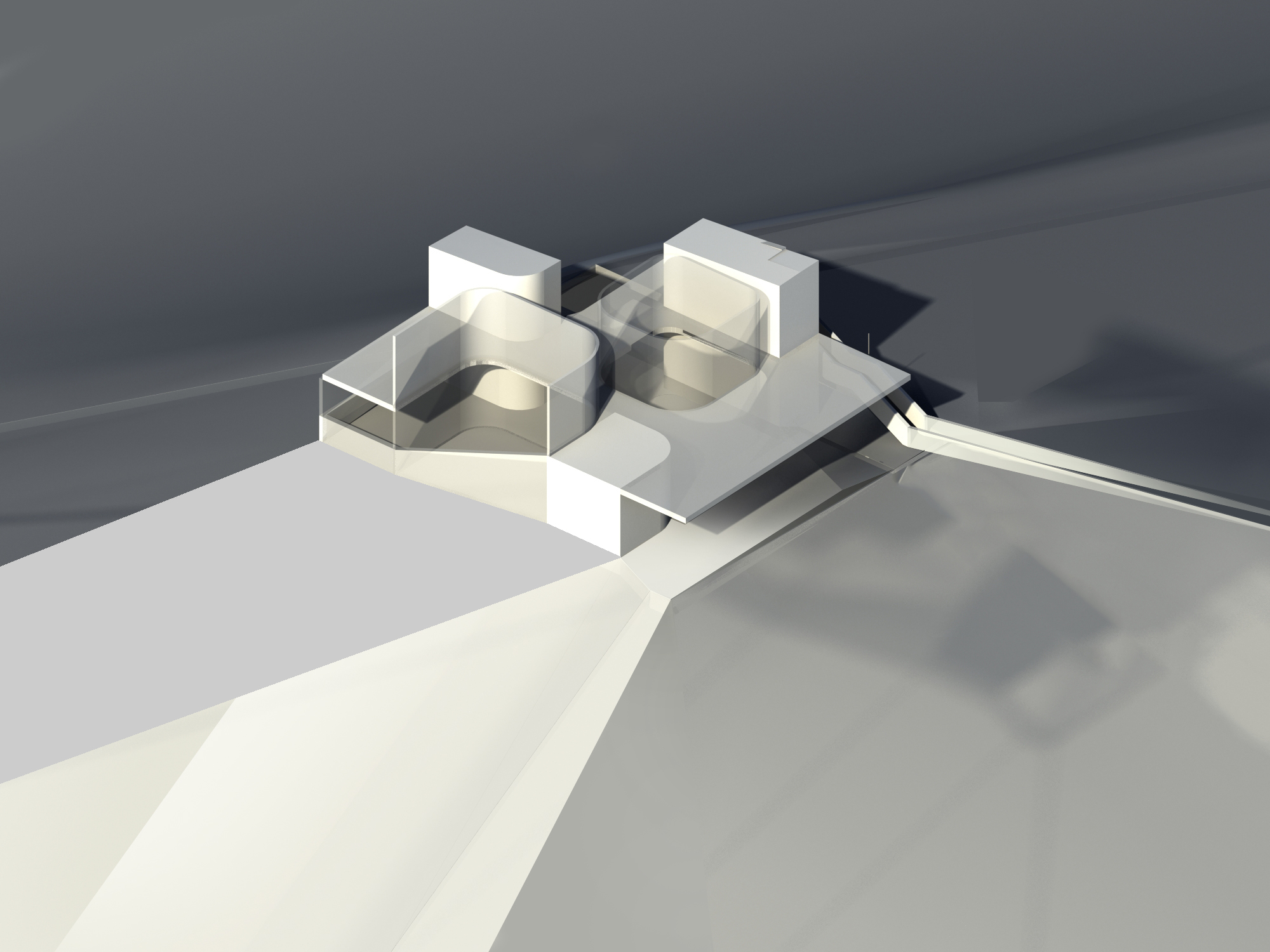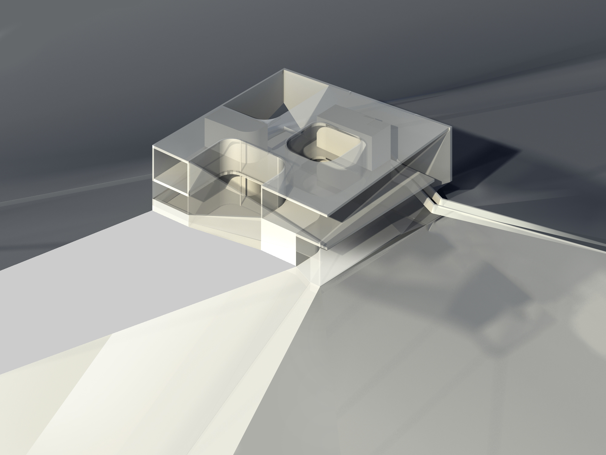 KINDERGARDEN | 1st distinction / concept The objective of competition was the creation of two autonomous facilities, a kindergarden in the ground floor and a multipurpose hall in the first floor with separate entrances without inner connection. Our intent was the coexistence of these two facilities as well as the creation of an urban atractor, compatible with the size of the given area. For this purpose, a unified structure was created at the borders of the plot, with all the complexity inserted to the interior. The basic tools of the synthesis were the internal atriums, the solids (auxiliary spaces) and the "skin". The atriums and the enclosed solid spaces were positioned vertically between the two levels thus creating visual and functional unifications for the two facilities and providing freedom of movement and flexibility of usage. Attempted to handle the boundaries not as dividing borders but as topological connections, as momentary passages from the urban space to the building and vice versa. The external semitransparent skin constituted the main element of communication with the surrounding space of the neighborhood because it retreats in the points where the flow of the city is energizing the building. With this decision, the urban void is received into the building, it is formed inside and through the major opening in the multipurpose hall it is returned to the city.
